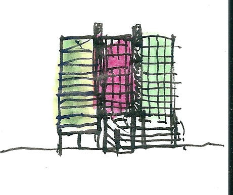 Revised typical tower floor plan. New core arrangement, , divides programs up so circulation doesn't overlap and privacy maintained. Linear residential apartments to maintain existing structural grid, optimise orientation benefits and allow for efficient cross flow ventilation in sub-tropical climate. The community space is envisaged will help connect internal community members it also acts as a place residents can access produce from agriculture Agriculture divided into plant and equipment space and growing decks. Facades to consider water capturing and light penetration capabilities.